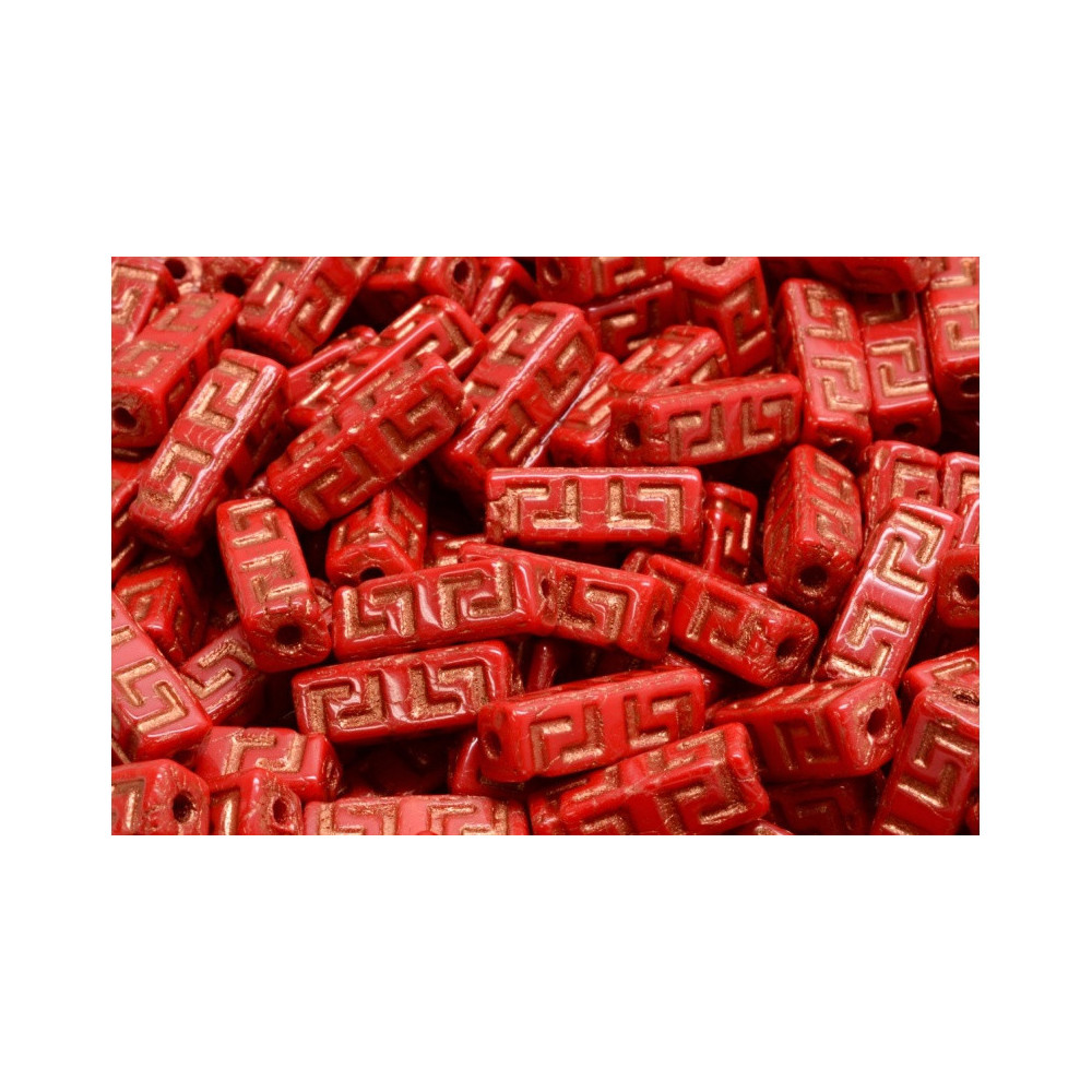 Embrace the artistry of the past and let your imagination run wild with the stunning Celtic Block Beads - Opaque Coral Red/Copper from Rutkovský, a true gem of Czech craftsmanship.