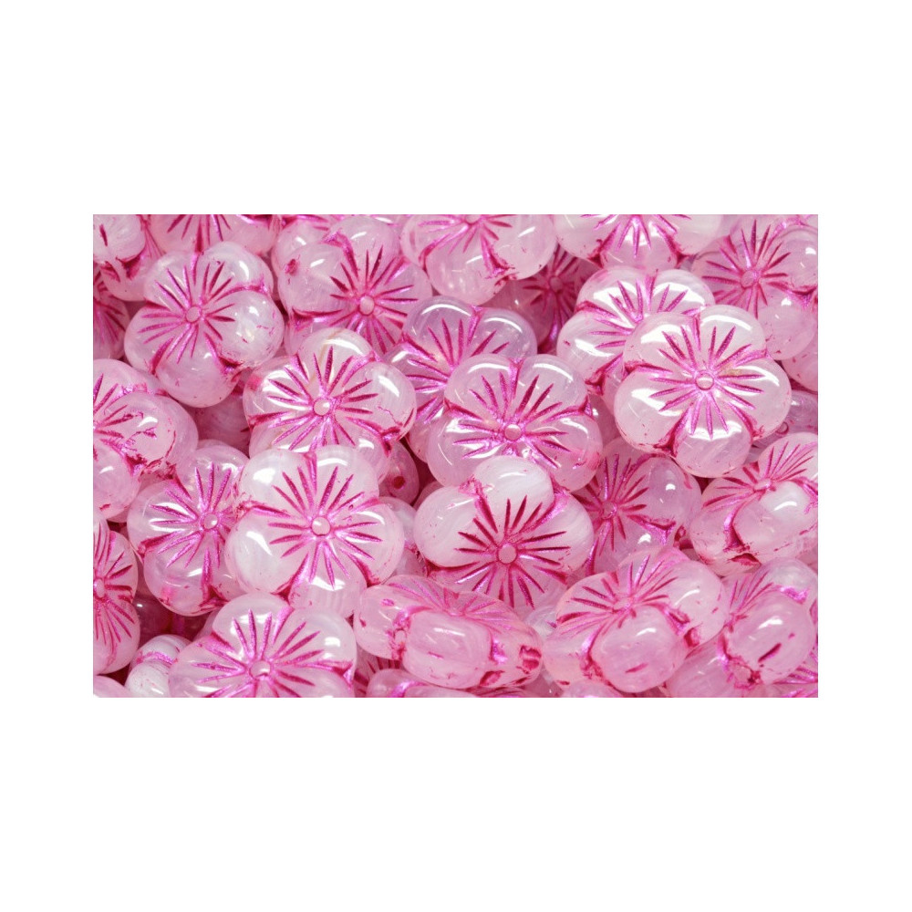 Cherry Flower Beads 14x14mm White with Pink Wash R0201-43807