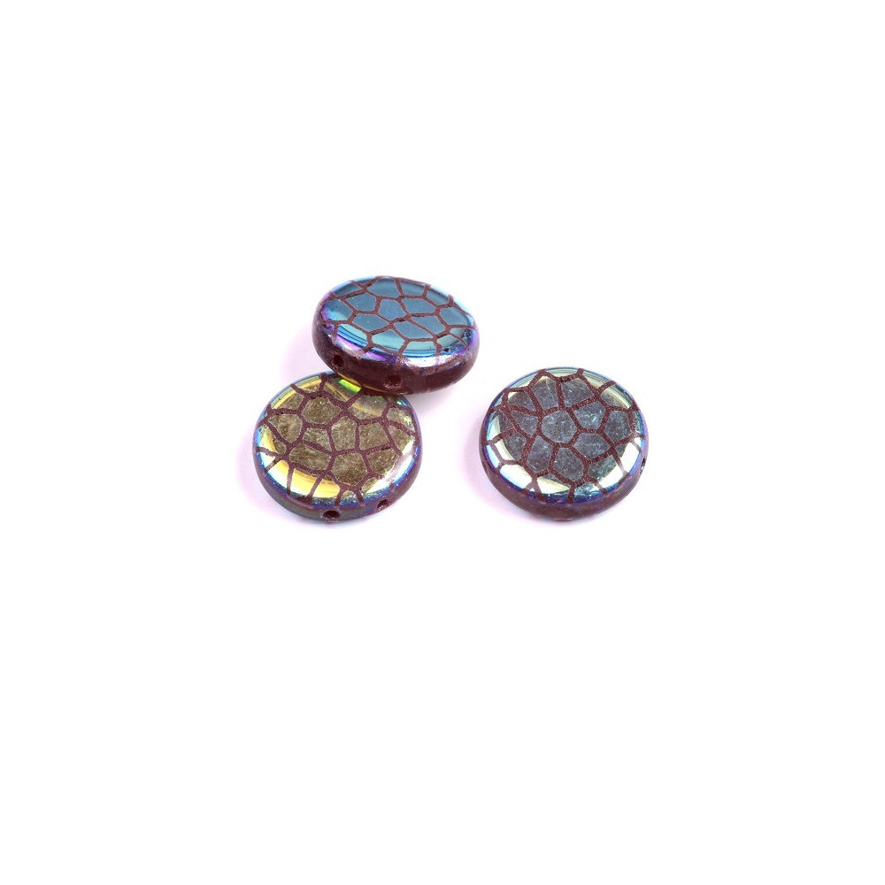 Discover the enchanting charm of the 2 Hole Coin Beads from the esteemed Czech manufacturer Rutkovsky. These exquisite beads measure 14mm in diameter and showcase a smooth, flat round shape adorned with intricate detailing that adds depth and texture to any jewelry creation. With two parallel holes, these beads offer versatile stringing options, making them an essential addition to your crafting toolkit.