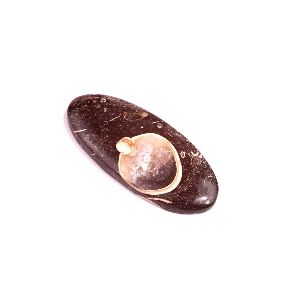 This unique cabochon made of Colus Fossil natural stone brings a piece of prehistory to your jewelry. Each piece is original, with a unique pattern of spiral fossil.