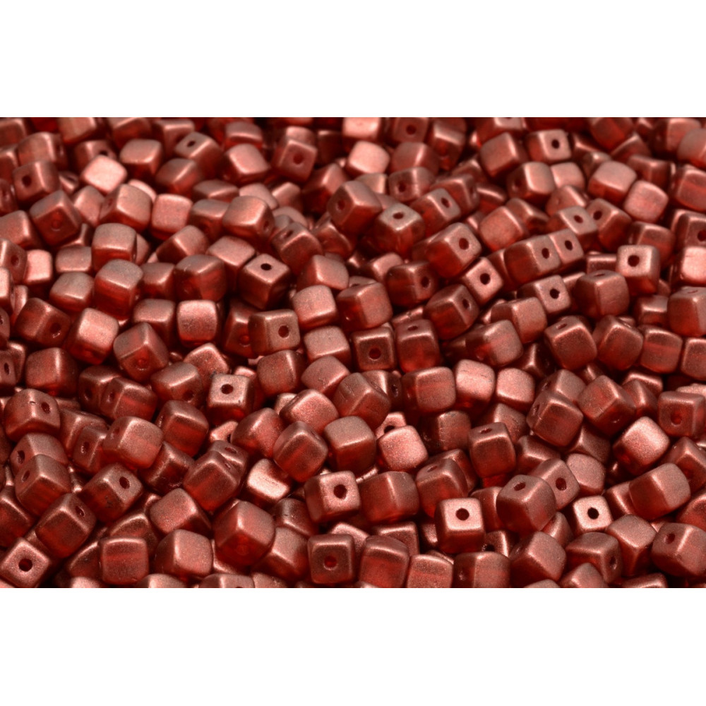Metallic copper hues and a precise geometric profile characterize these premium Cube Beads 4 x 4 mm, manufactured by the Rutkovsky family using traditional handmade Czech glass pressing techniques. The 4 mm square dimensions are engineered for architectural stability in beadweaving, featuring a consistently centered 0.8 mm hole that allows for multiple thread passes. Because of their uniform shape, these Czech glass beads exhibit excellent stacking behavior, making them the ideal choice for professional-grade cubic right-angle weave (CRAW), flat peyote, or square stitch projects where geometric precision is paramount.