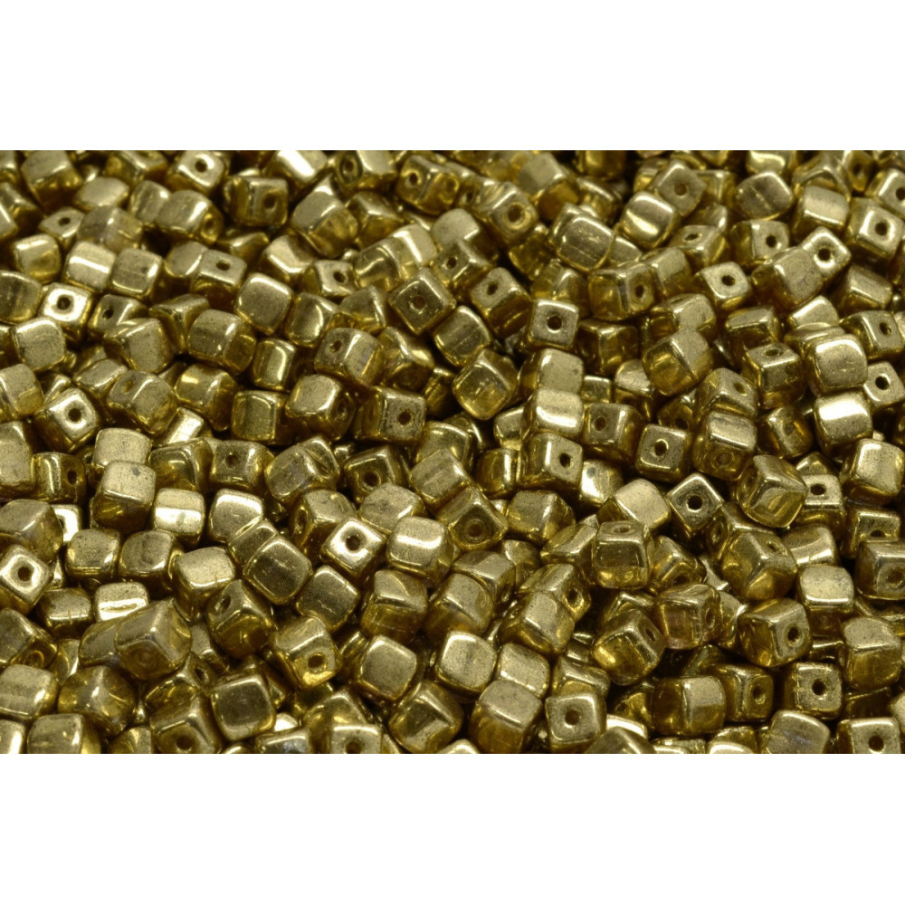 Gold-toned metallic surfaces define these meticulously pressed handmade Czech glass elements. These Cube Beads 4 x 4 mm offer a crisp, geometric profile essential for contemporary jewelry designs and structured beadwork. The warm bronze luster provides a sophisticated finish that elevates any artisanal project from simple stringing to complex weaving.
