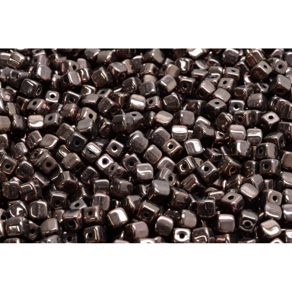 Dark bronze highlights dance across the surface of these cubes, making them an ideal choice for "dark academia" styles or elegant evening-wear accessories. The uniform 4 x 4 mm size and consistent 0.8 mm hole ensure that they sit perfectly on various stringing materials, providing a sturdy and stylish foundation for your work. Their geometric shape is particularly effective when used as spacers or focal points in minimalist, modern designs.