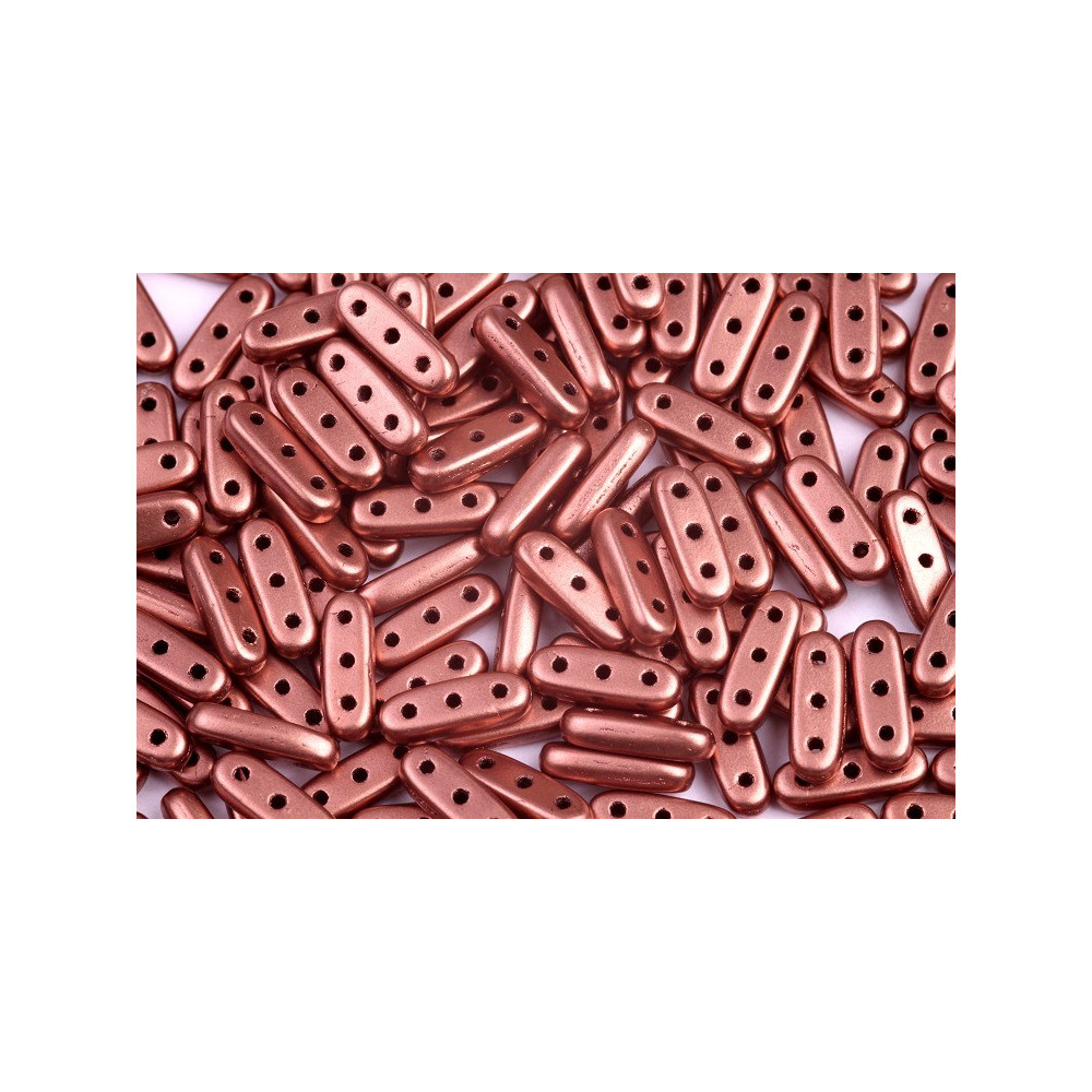 Discover the extraordinary potential of CzechMates Beam Beads in a stunning Matte Metallic Bronze Copper finish. Measuring a sleek 3x10mm, these innovative Czech glass pressed beads are meticulously designed for those who aspire to create structural and dimensional jewelry that captivates the eye. With three precision-drilled holes, these elongated beauties are perfect for a wide variety of applications, from multi-strand designs to intricate bead-weaving and layering techniques.