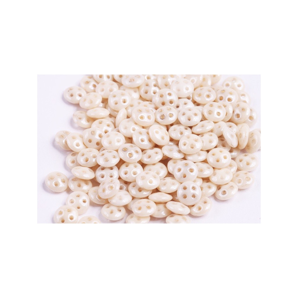 Transform your jewelry-making experience with the stunning CzechMates QuadraLentil Beads, now available in the exquisite Luster Opaque Champagne color. These innovative Czech glass pressed beads are crafted with precision and creativity in mind, featuring a unique flat, round lentil shape combined with four expertly drilled holes. Measuring 6mm in diameter, these beads open up a world of design possibilities for artisans and crafters alike.