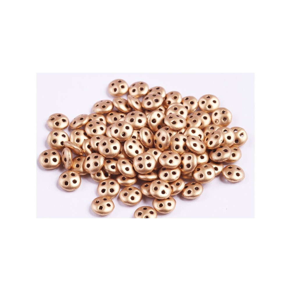 Discover the exquisite beauty and unparalleled versatility of CzechMates QuadraLentil Beads, now available in a stunning Matte Metallic Flax finish. These innovative Czech glass pressed beads, measuring 6mm in diameter, are a game changer in the world of beadwork. With their unique flat, round lentil shape and four precision-drilled holes, they open up a world of creative possibilities for artisans and hobbyists alike.