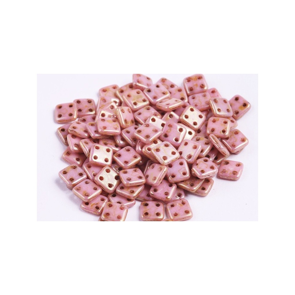 Crafted from high-quality Czech glass, each QuadraTile bead boasts precision, durability, and a smooth, professional finish that enhances the overall aesthetic of your jewelry. The beautiful pink hue adds a touch of charm and femininity, making these beads perfect for a variety of projects, from intricate bracelets to statement necklaces and dimensional earrings. The even spacing of the holes ensures ease of use, allowing you to focus on your creativity without any hassle.