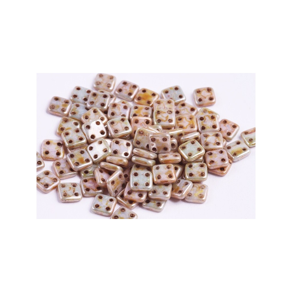 Elevate your beading experience with CzechMates QuadraTile Beads, an exquisite addition to any jewelry maker's collection. These premium Czech glass pressed beads boast a sleek, flat square design, measuring 6x6mm, and feature four precision-drilled holes that open up a world of creative possibilities. Finished in a chic beige hue, these beads are perfect for adding a touch of modern elegance to your projects.