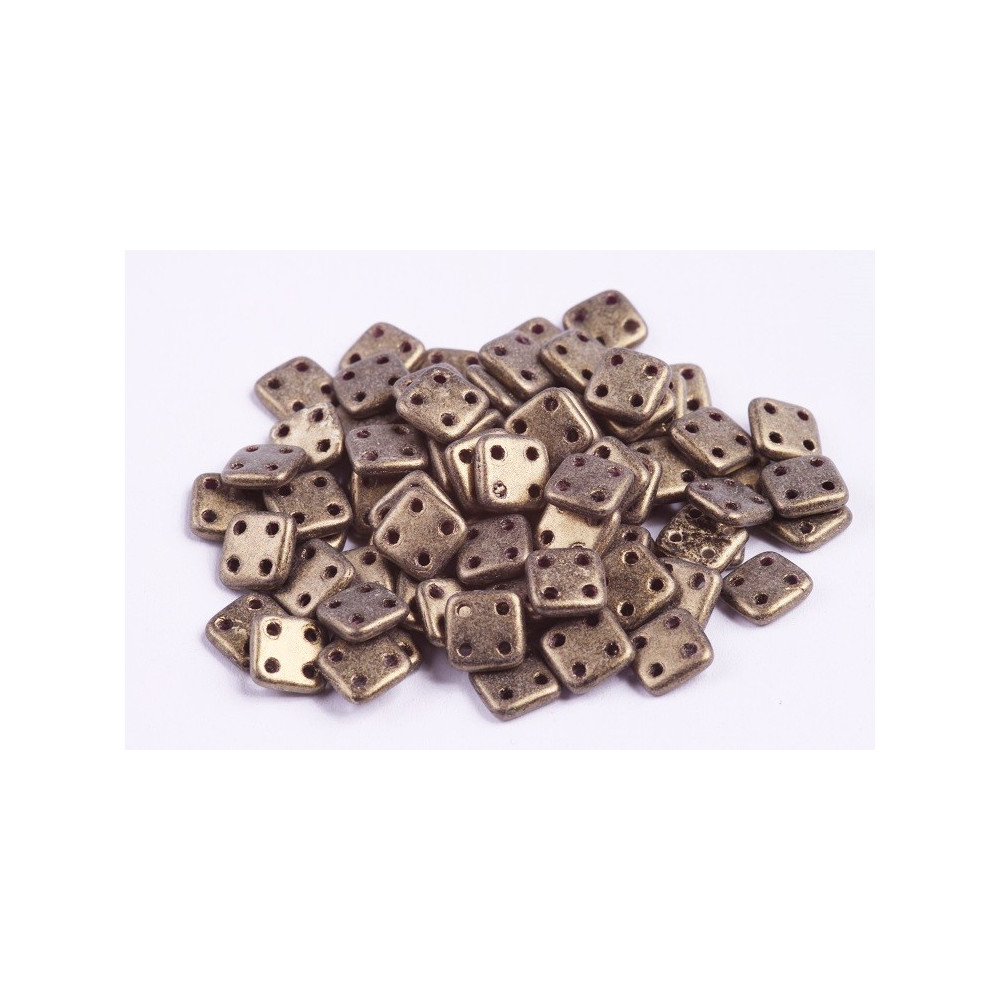 Discover the transformative power of CzechMates QuadraTile Beads in a stunning gold hue, the perfect addition to your jewelry-making toolkit. These premium Czech glass pressed beads, measuring 6x6mm, feature a sleek, flat square shape complemented by four precision-drilled holes, offering unparalleled versatility for your crafting projects. Whether you are a seasoned artisan or a passionate beginner, these beads will inspire your creativity and elevate your designs.