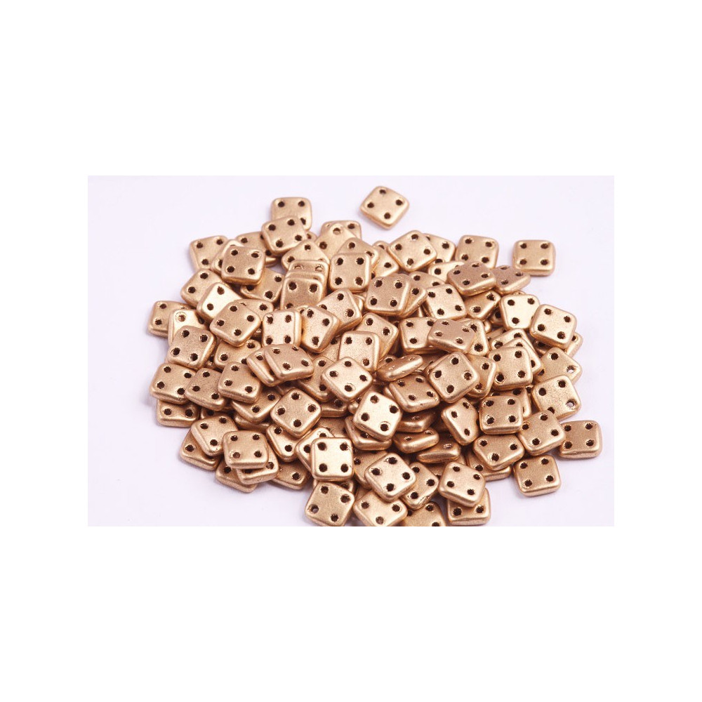 Discover the perfect blend of innovation and elegance with our Gold CzechMates QuadraTile Beads. Measuring a versatile 6x6mm, these exquisite Czech glass pressed beads boast a sleek, flat square shape complemented by four precision-drilled holes. Designed for both novice and experienced beaders alike, these beads open up a world of creative possibilities for your jewelry-making projects.