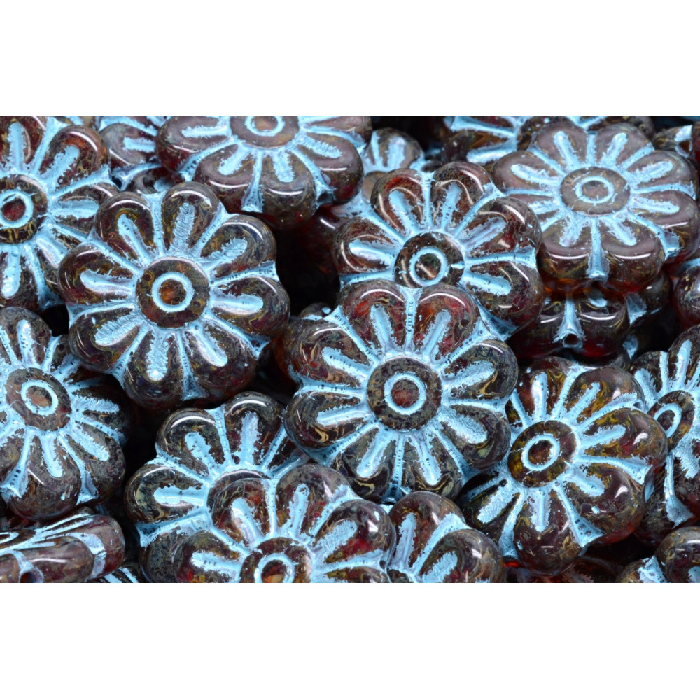 Daisy Flower Beads 18 x 18mm Wine with Light Blue Wash R0908-86800-54308