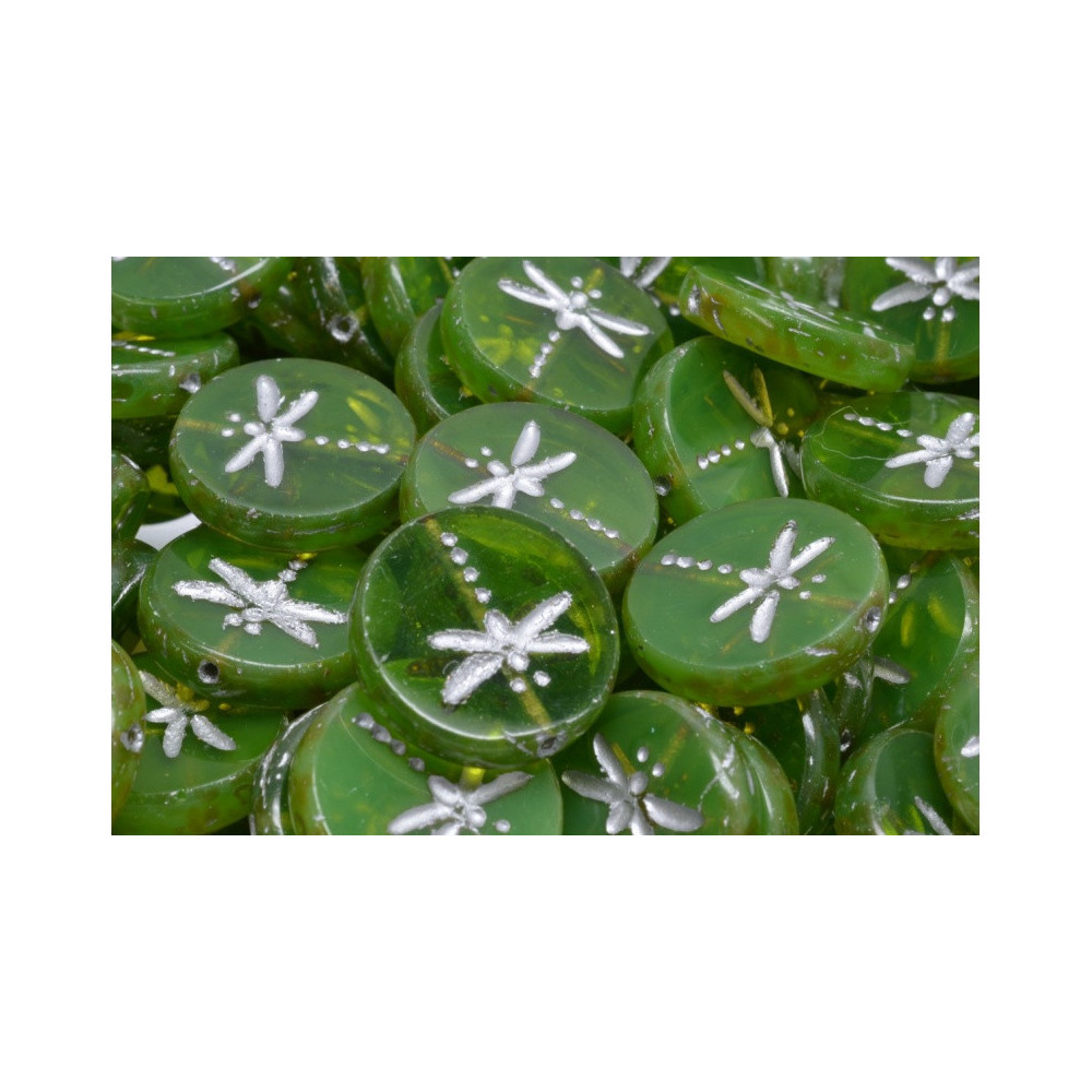 Introducing the exquisite TCB Dragonfly Beads, measuring 17x17 mm and crafted from the finest Czech glass by the renowned manufacturer Rutkovský. These stunning beads bring the serenity of nature to your creative projects, showcasing a vibrant lush green hue that evokes the freshness of spring foliage and the tranquility of a peaceful garden. Each bead is delicately table-cut using traditional pressed-bead techniques, ensuring a flawless finish that reflects the quality and craftsmanship synonymous with Rutkovský.