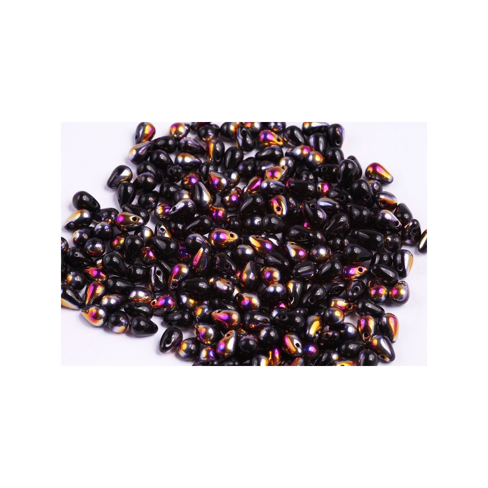 Transform your jewelry creations with the exquisite Drop Beads (4x6mm) from the renowned Czech manufacturer Rutkovský. These beautifully crafted beads are made from high-quality Czech pressed glass, showcasing a stunning Jet Sliperit finish that exudes sophistication and charm. The tapered tip features a perfectly sized hole, measuring 0.8mm, making these teardrop beads incredibly versatile for a variety of jewelry applications.