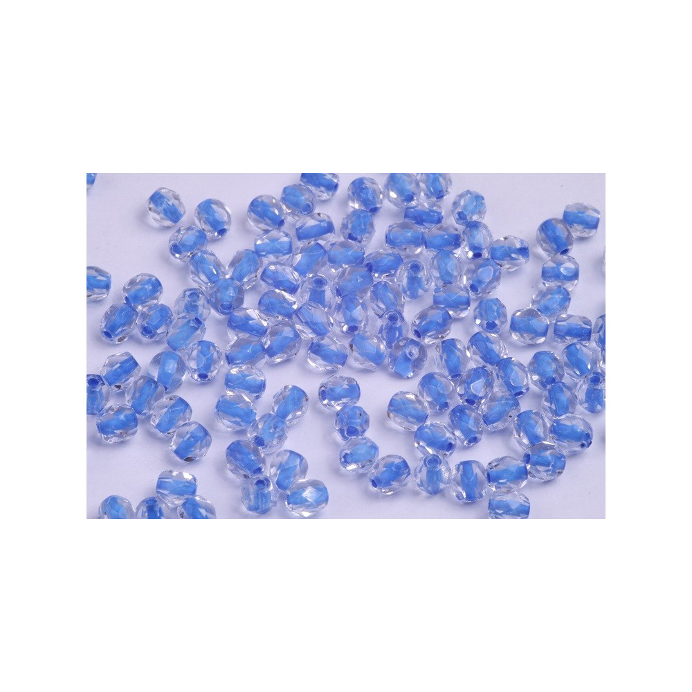 Blue core accents meet crystal clarity in these stunning faceted glass rounds, which feature a distinct transparent exterior over a vibrant inner center. Choosing these Fire Polished Beads 4mm offers a unique depth of color compared to standard solid alternatives, as the light passes through the clear outer glass to illuminate the blue heart of each bead. The interplay of transparency and saturated color makes them a standout choice for contemporary jewelry designs.