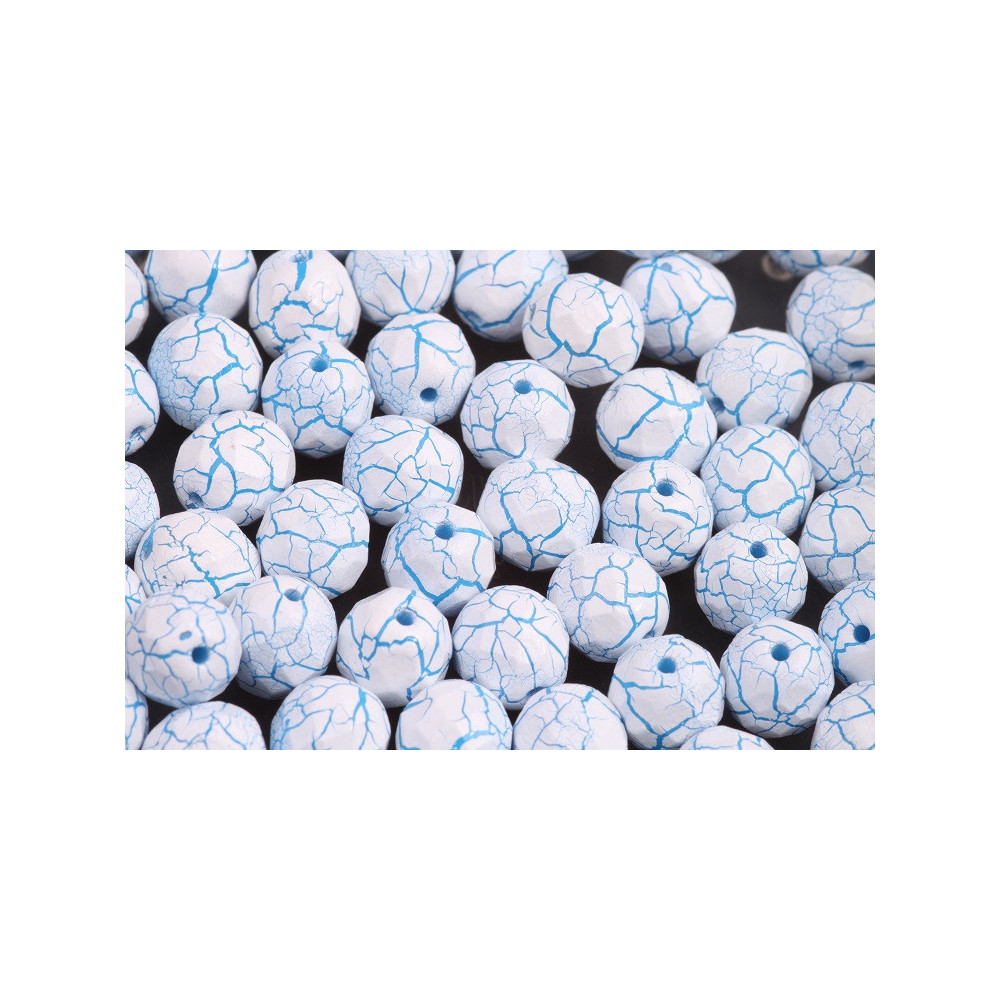 Crisp white glass serves as the canvas for a striking blue crackle effect, creating the distinctive ionic white/blue finish. These Fire Polished Beads 8mm are meticulously manufactured by Rutkovsky, a renowned family-owned workshop in the heart of Northern Bohemia. Each piece undergoes a traditional machine-cutting process followed by high-temperature fire polishing, ensuring a brilliant faceted surface that catches the light while maintaining a soft, organic texture.