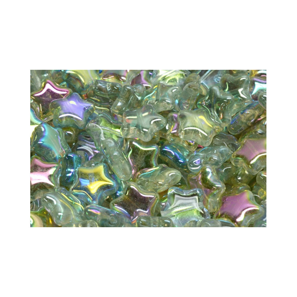 Flat Star Beads N. 3471 12x12mm CRYSTAL GREEN RAINBOW