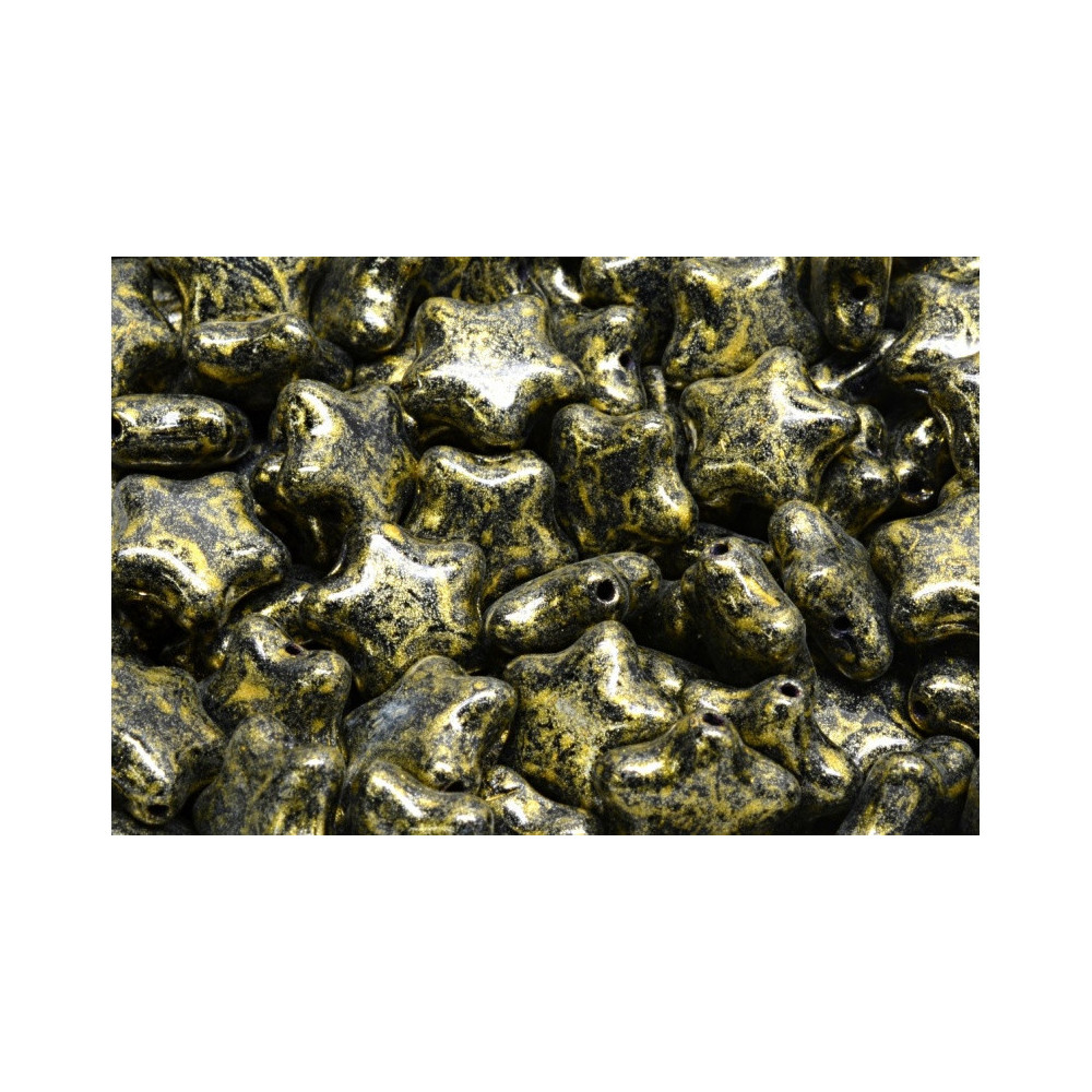 Gold-flecked celestial motifs continue to dominate the dark academia and mystical jewelry trends, making these unique pressed glass stars a must-have for your current collection. These Flat Star Beads 12 x 12 mm feature a striking contrast between a deep black base and a rich, distressed gold finish that evokes the look of ancient artifacts or a starlit night sky. The weathered appearance adds a layer of sophistication to any project, bridging the gap between modern style and vintage aesthetics.
