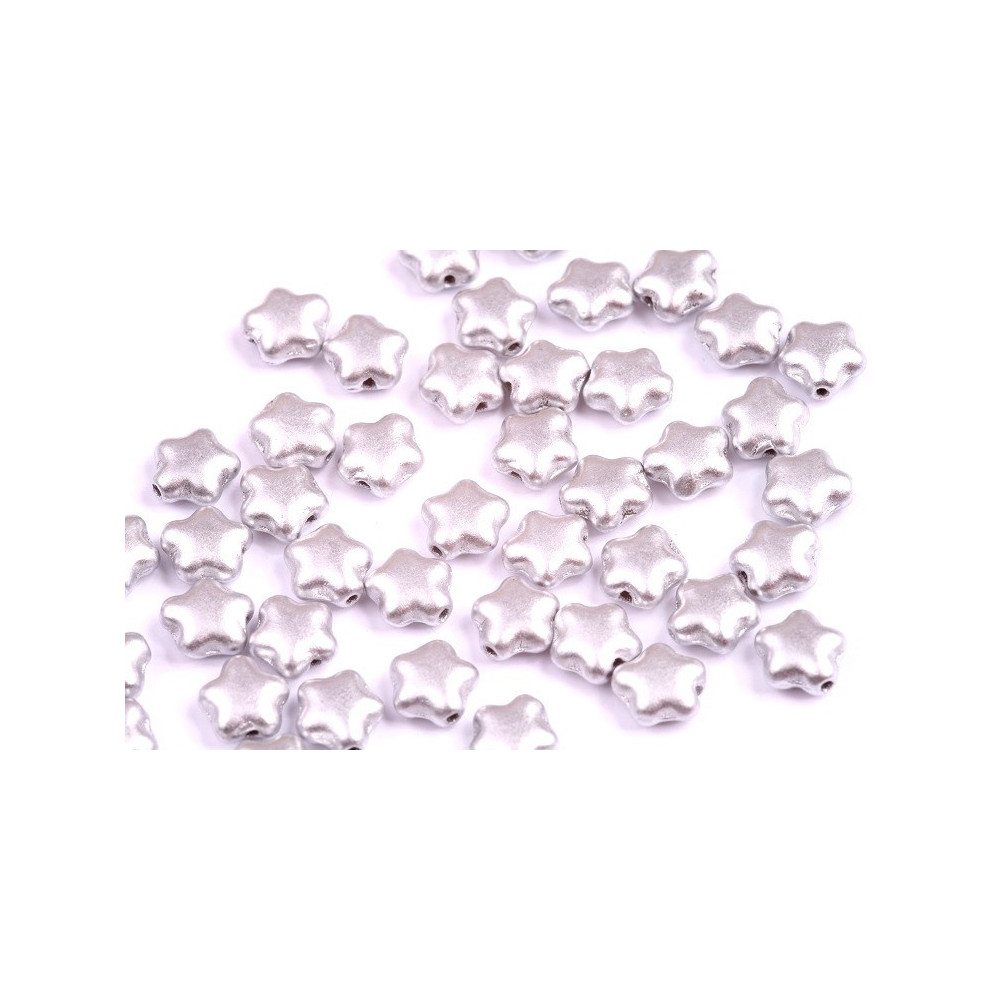 Luminous silver tones ensure these Czech glass stars remain a timeless addition to any artisan's bead stash, especially for winter-themed or astrological jewelry lines. Pair these silver star beads with deep blues or blacks to create a high-contrast aesthetic that mimics the night sky, celebrating the enduring legacy of Czech glass bead artistry and family tradition.