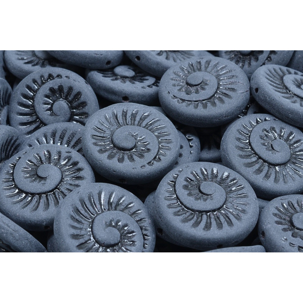 Jet black matte finishes bring a sophisticated, prehistoric aesthetic to your jewelry projects through these meticulously crafted Fossil Shell Beads 18 x 18 mm. Each piece is a testament to the traditional Czech glassmaking heritage, produced in the heart of Bohemia by the Rutkovsky family. The hand-pressing process ensures that every ammonite-inspired detail is captured with clarity, creating a bead that mimics the organic texture of ancient oceanic treasures while maintaining the durability of premium Czech glass.