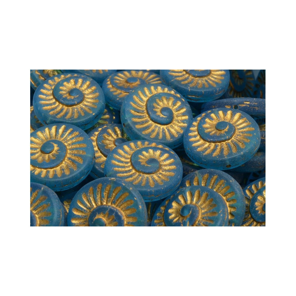 A sophisticated matte finish lends a contemporary edge to the classic spiral motif, while the gold wash accentuates every detail of the fossilized pattern. This contrast of textures makes these Czech glass beads perfect for designers looking to balance ancient aesthetics with modern jewelry trends, especially when creating focal points for statement bracelets or pendant drops.