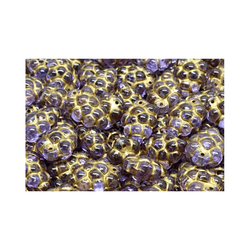 Finding realistic botanical elements for nature-inspired jewelry often results in pieces that look too generic or lack the depth of real fruit. Crystal amethyst glass combined with a rich gold wash provides the sophisticated realism needed for high-end vineyard-themed designs and autumnal collections. These Grape Beads 16 x 11 mm are hand-pressed using traditional Czech glassmaking heritage, ensuring each bead captures the intricate texture of a ripening cluster. The transparent violet core catches the light beautifully, while the metallic finish highlights every detail of the unique flower bead molds and fruit shapes from the Rutkovsky family.