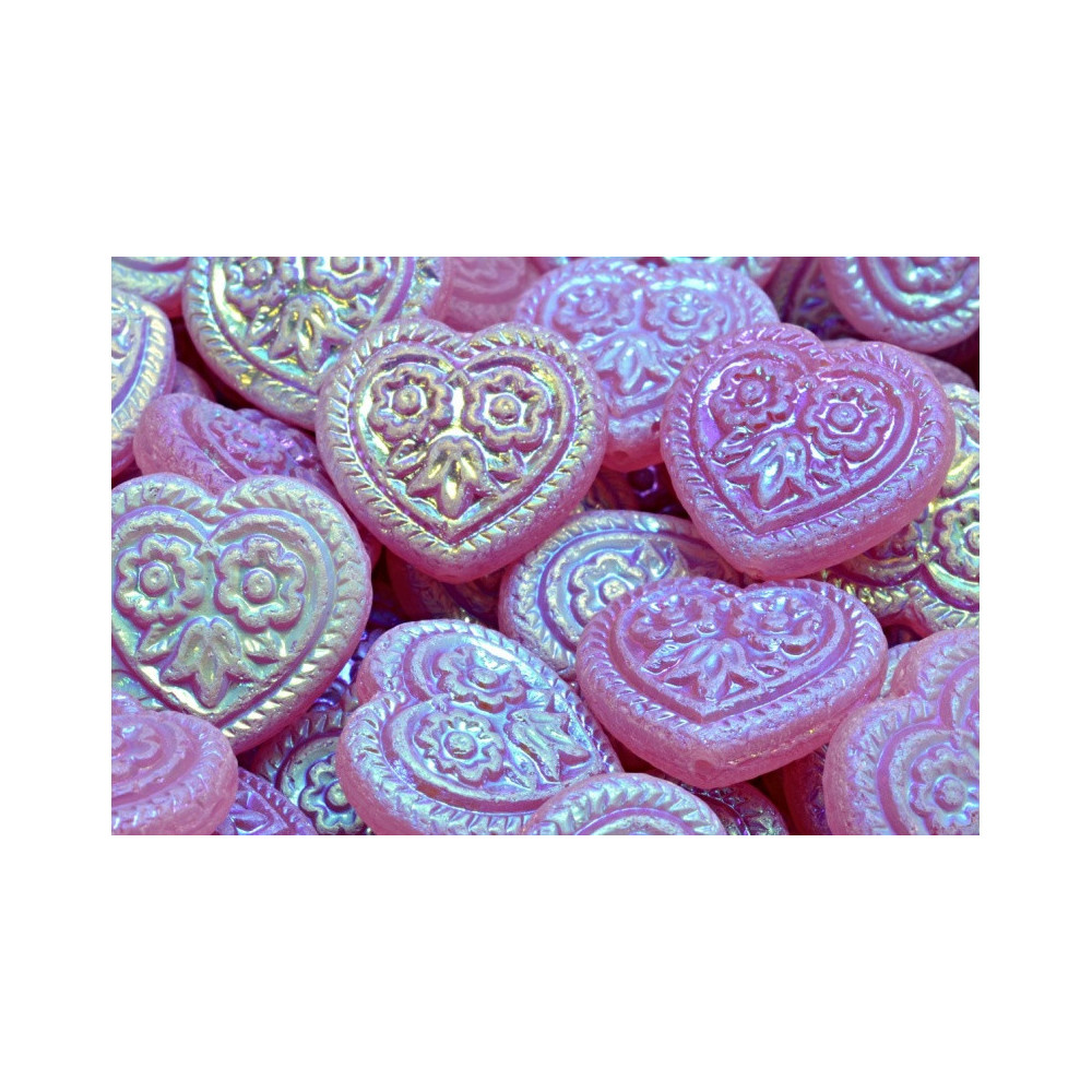 Heart Beads With Flowers 17x17mm No. 5340