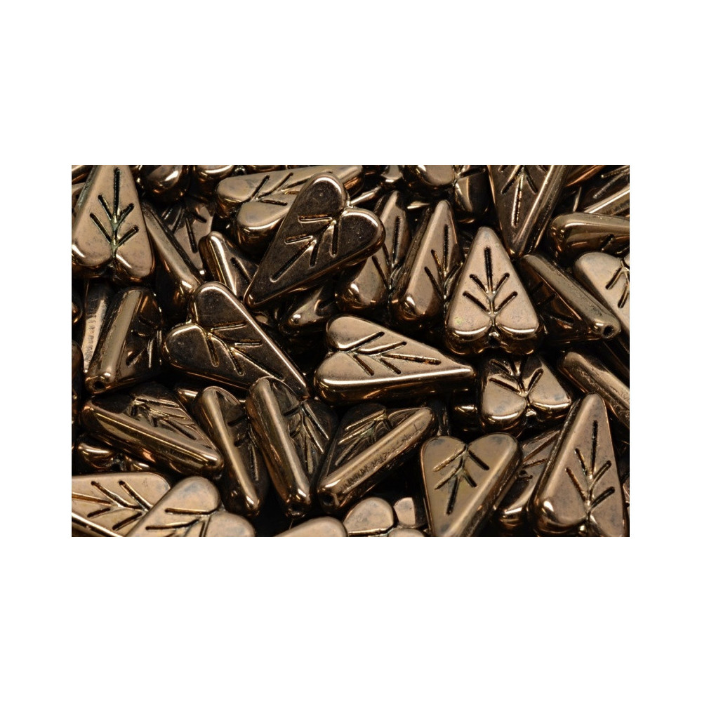 Celebrate nature’s elegance with the exquisite Rutkovský Heart Leaf Beads in a captivating Jet Bronze hue. Crafted by renowned Czech manufacturer Rutkovský, these beautifully shaped glass pressed beads embody organic charm paired with delicate detailing. Their unique heart-like form, adorned with intricately etched leaf patterns, infuses a touch of nature-inspired artistry into your jewelry creations.