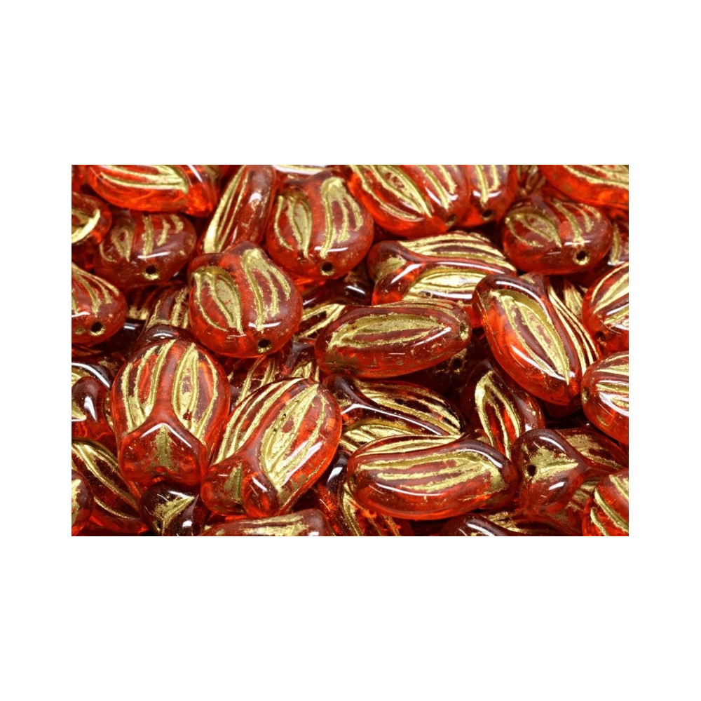 Introducing the exquisite Tulip Beads from Rutkovský, a renowned manufacturer of fine glass beads based in the Czech Republic. These stunning beads, measuring 16x11mm, showcase a beautifully crafted tulip shape adorned with delicate etched petal details. The unique design features a slightly curved form and intricate grooves that mimic the elegance of blooming tulips, making them an ideal choice for floral jewelry, beaded bouquets, and nature-inspired creations.