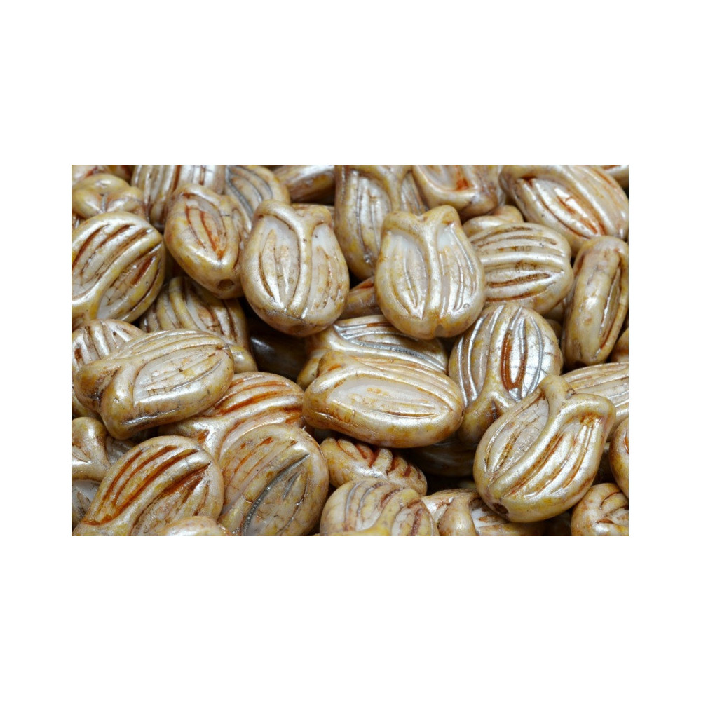 Discover the exquisite charm of Rutkovsky's Tulip Beads, beautifully crafted from premium Czech glass. Measuring 16x11mm, these pressed beads are designed to resemble delicate tulips, featuring finely etched petal details that capture the essence of nature's beauty. The slight curvature and intricate grooves of each bead mimic the elegance of blooming flowers, making them a stunning addition to your jewelry-making toolkit.