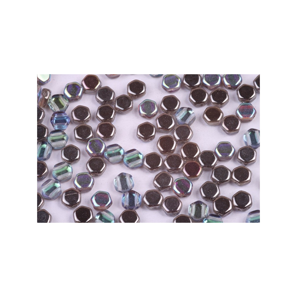 Honeycomb Beads size: 6 mm Bead hole size: 0,9 mm Price per pack: 20 pcs Color: JET IRIS LUSTER...