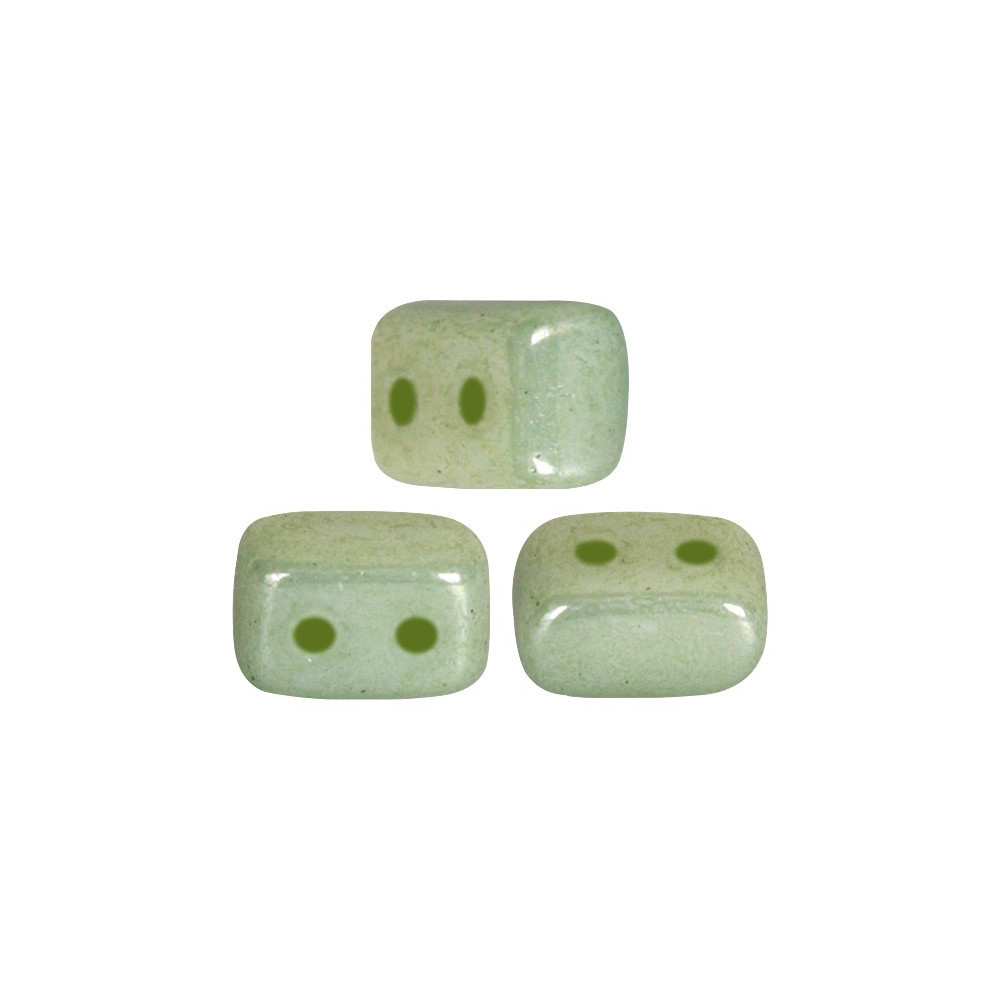 Two-hole pressed Ios® par Puca® beads 2.5x5.5mm OPAQUE LIGHT GREEN CERAMIC LOOK 03000/14457