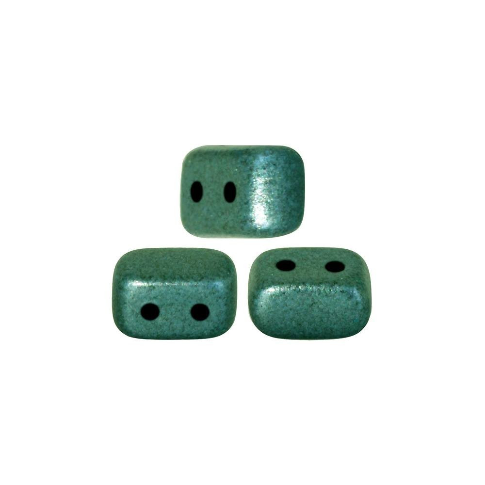 Two-hole pressed Ios® par Puca® beads for professional jewelry making. 2.5x5.5mm METALLIC MAT GREEN TURQUOISE 23980/94104