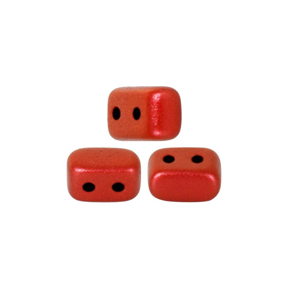 Sultry crimson tones meet a sophisticated satin sheen in these versatile rectangular two-hole beads. Designed by the acclaimed French artist Annick Puca, the Ios® par Puca® shape provides a structural foundation for intricate bead weaving patterns, allowing for precise alignment in complex geometric layouts. The Red Metallic Mat finish offers a rich, velvety texture that absorbs and reflects light with a subtle glow, making it a perfect choice for statement necklaces or elegant bracelets. As part of the interconnected Les Perles par Puca® collection, these Czech glass beads are engineered to nestle seamlessly with other shapes such as Amos® par Puca® and Arcos® par Puca®.