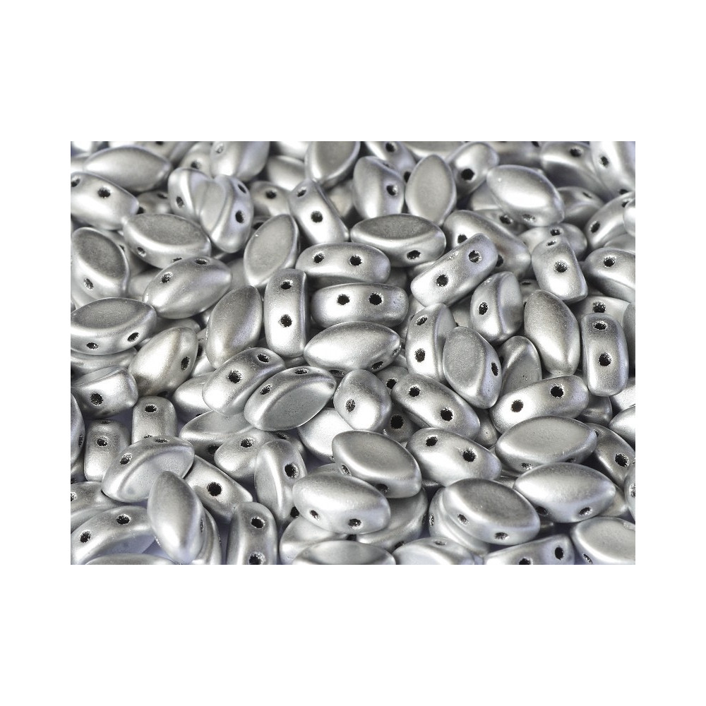 Elevate your jewelry creations with the stunning IrisDuo Beads, a masterpiece from the renowned glass artisans of the Czech Republic. Measuring 4x7mm and featuring a unique marquise (navette) shape, these premium pressed glass beads are designed with dual parallel holes that offer unparalleled versatility in beadwork. The exquisite Aluminium Silver finish adds a touch of sophistication, making them an excellent choice for both classic and contemporary designs.
