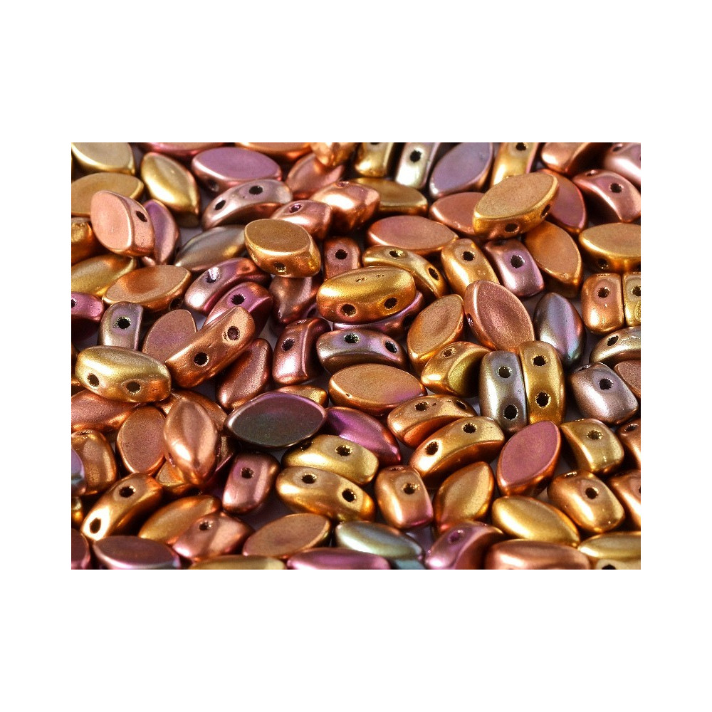 Iris Duo Beads size: 4x7 mm Bead hole size: 0.8 mm Price per pack: 20 pcs Color: BRASS GOLD Color...