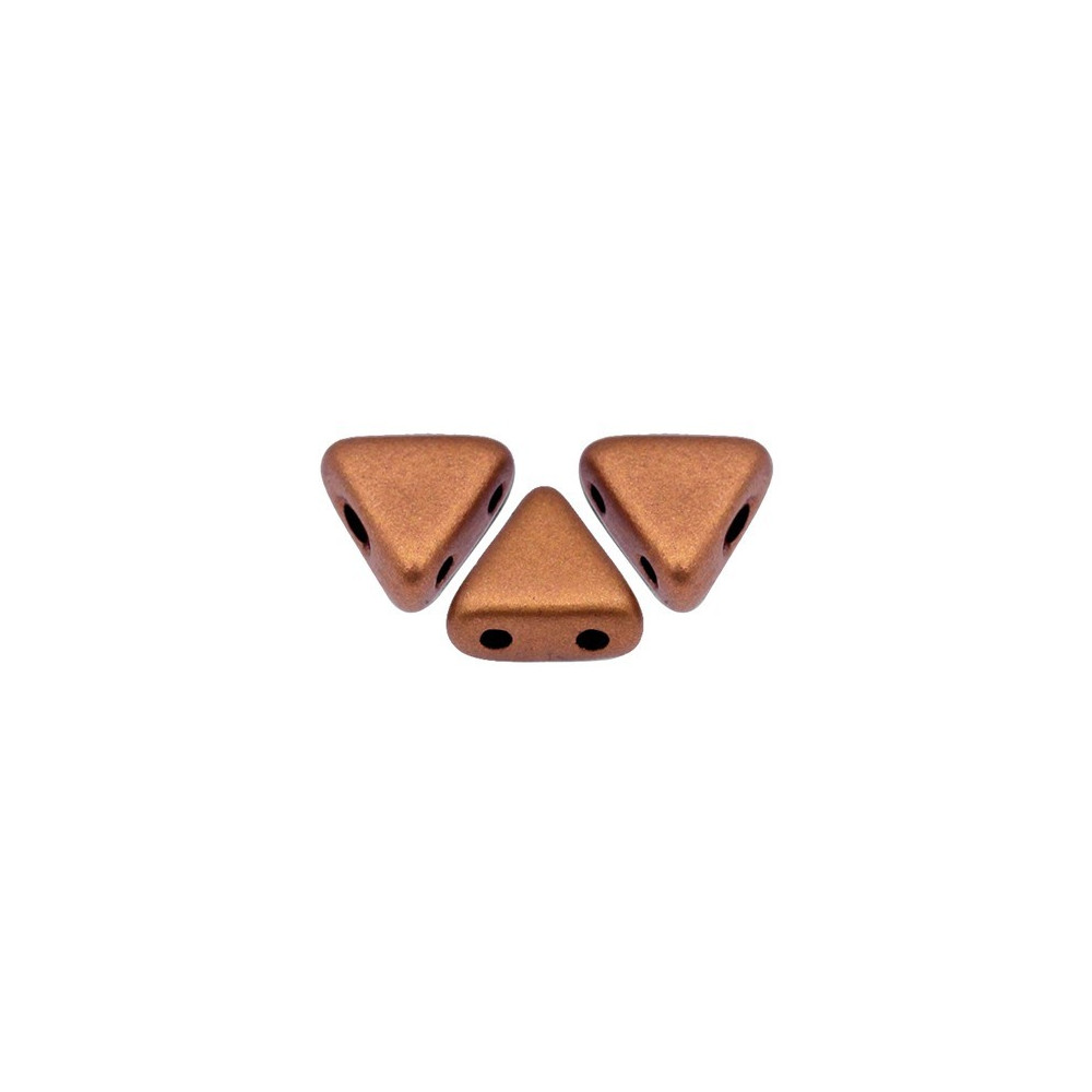 Copper Gold Mat finish provides a sophisticated metallic depth to the triangular geometry of these 6x6 mm pressed glass components. As part of the prestigious Les Perles par Puca® collection, Khéops® par Puca® beads feature two parallel 0.8 mm holes engineered for precise alignment in complex structural beadwork. These components are specifically designed by French artist Annick Puca to integrate seamlessly with other shapes in the range, such as Amos® par Puca®, allowing for the creation of intricate, mosaic-like patterns with perfect mathematical symmetry.