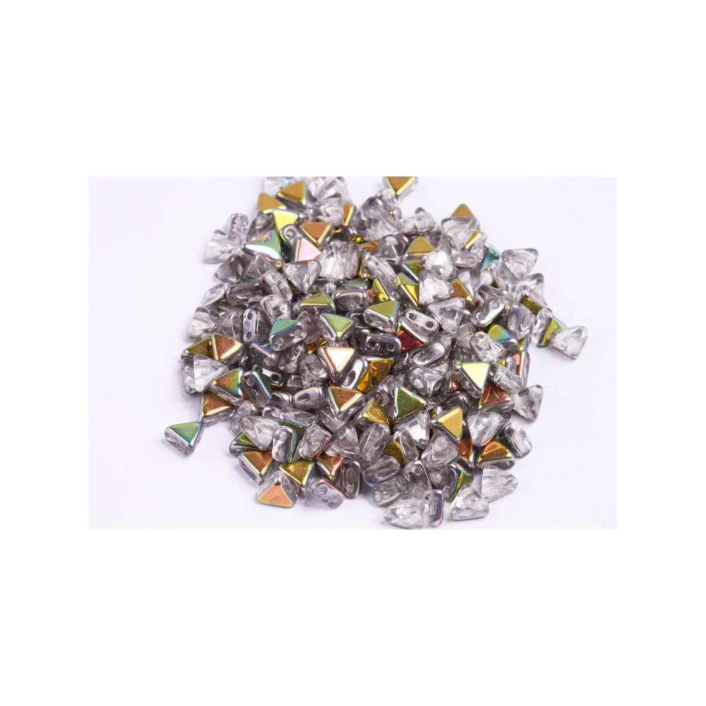 Geometric patterns and structural elegance are at the forefront of contemporary jewelry design, making these specialized triangular components a must-have for the modern artisan. These Khéops® par Puca® beads, with their distinctive two-hole configuration, provide the perfect foundation for creating sophisticated mosaic-like textures and three-dimensional shapes. The Crystal Vitrail Light finish adds a layer of enchantment, featuring a transparent glass base that reflects a mesmerizing spectrum of soft greens, pinks, and golds across its faceted surface.