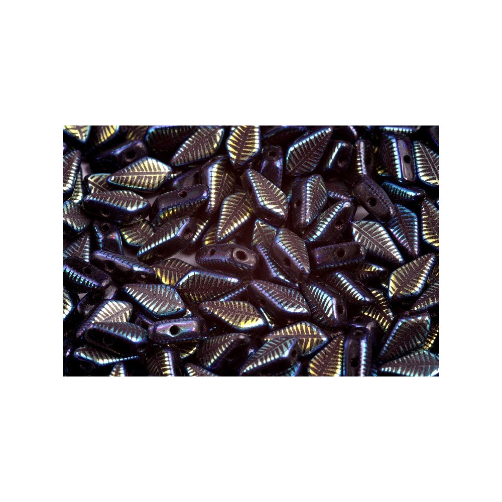 The Rutkovský Kite Beads in Jet Laser Feather showcase a mesmerizing interplay of deep black with iridescent undertones that shimmer in the light. This color exudes sophistication, making it a versatile choice for a variety of creative projects. The 0.8 mm hole size ensures easy threading, allowing for reliable stability in your beadwork.