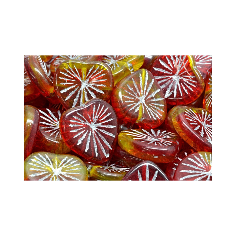 Glass pressed beads Kiwi Heart 18x18mm Beads size: 18 x 18 mm Price per pack: 2 pcs Color...