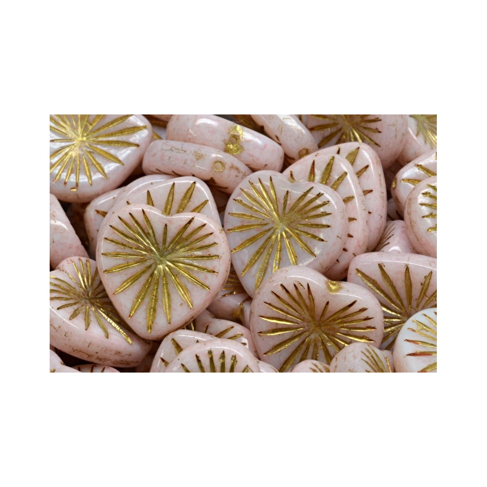 Glass pressed beads Kiwi Heart 18x18mm