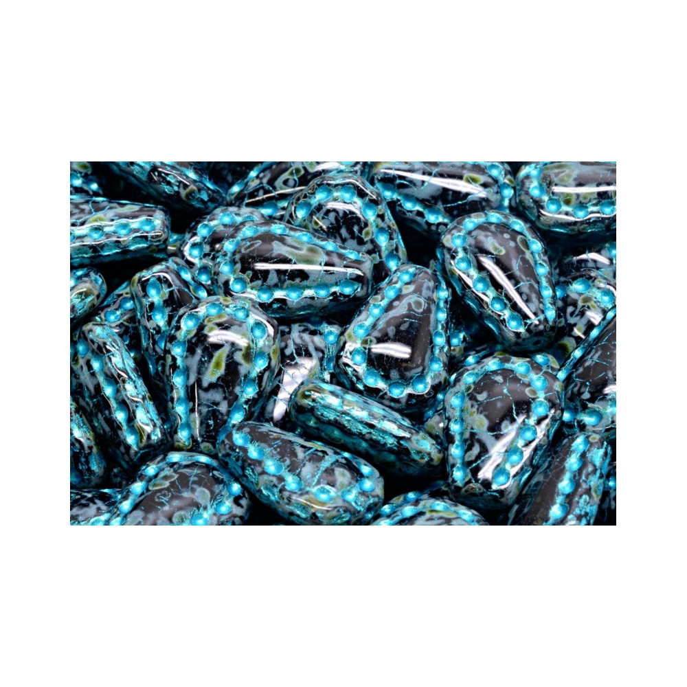 Introducing the exquisite Lacy Tear Beads from Rutkovský, a celebrated Czech manufacturer known for their commitment to quality and craftsmanship. Measuring 17x12mm, these stunning black glass beads showcase intricate lace-like details that exude vintage charm and sophistication. Their delicate teardrop shape, complemented by ornamental accents, makes them the perfect addition to any designer's collection.