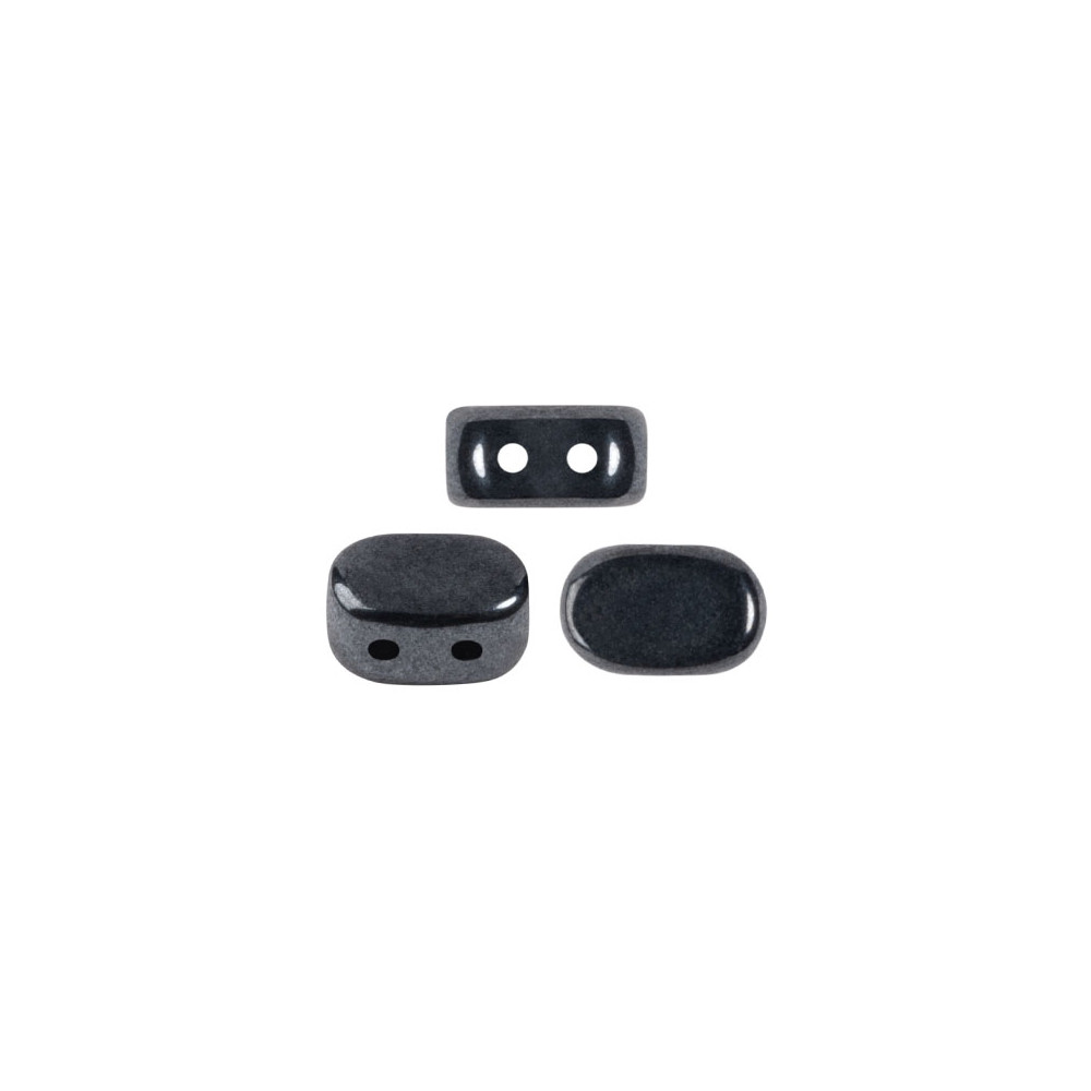 Jet Hematite Lipsi® par Puca® beads feature a sophisticated two-hole design and a flattened oval geometry, measuring precisely 7 x 4 mm with a consistent 0.8 mm hole size. These Czech glass beads are engineered for high-precision bead weaving, allowing for complex architectural structures when used alongside other shapes like Arcos® par Puca®. The parallel holes ensure perfect alignment in multi-row patterns, providing professional beaders with reliable tolerances for repetitive motifs.