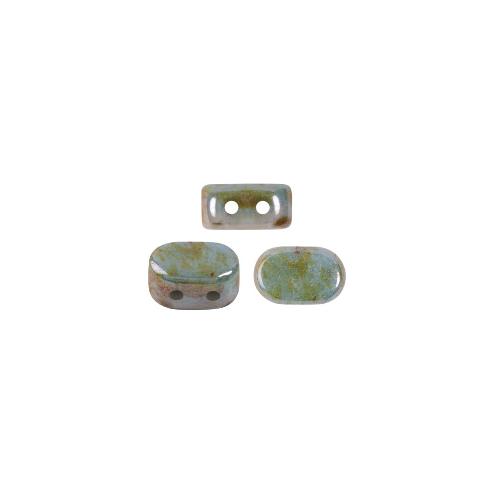 Mottled teal and earthy moss tones collide in these exquisite Lipsi® par Puca® beads, offering a sophisticated ceramic look that brings an artisan feel to any project. These 2-hole components are essential for creating structured, professional jewelry designs where alignment is key. The unique oval shape provides a smooth transition between elements, making them a favorite for complex bead weaving patterns.