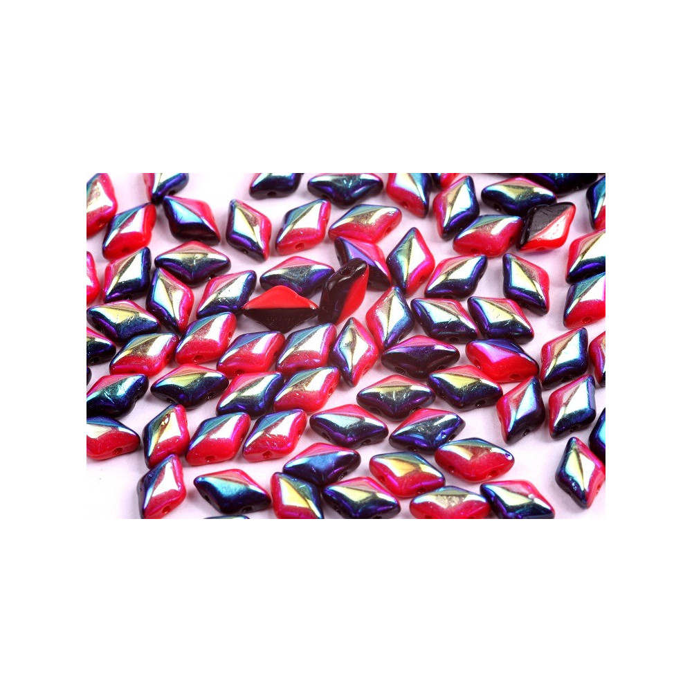 Vibrant ruby red meets the mysterious depth of midnight in these striking bicolor components. The sharp, diamond shape of these Matubo GemDuo beads allows for seamless nesting, creating a rich mosaic effect that is perfect for dimensional bracelets and bold statement necklaces. For a sophisticated touch in evening wear, these beads beautifully complement dark bronze tones or can be paired with silver accents for a sharp, modern contrast. Their unique flat profile and dual holes make them a staple for beadweaving enthusiasts looking to add texture and geometric precision to their handmade jewelry designs.