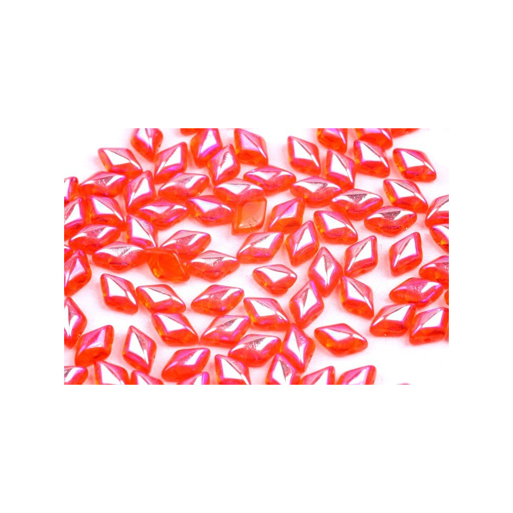 The vibrant glow of the Hyacinth AB finish captures the fiery essence of a summer sunset, enhanced by an iridescent Aurora Borealis coating that shimmers with every movement. Because of their unique flat-back and faceted top, these Matubo SuperDuo beads alternatives are essential for creating textured, three-dimensional surfaces in beadweaving. For a striking contrast, pair with cobalt blue or allow them to shine alongside neutral yellow topaz accents to emphasize their intense orange core.