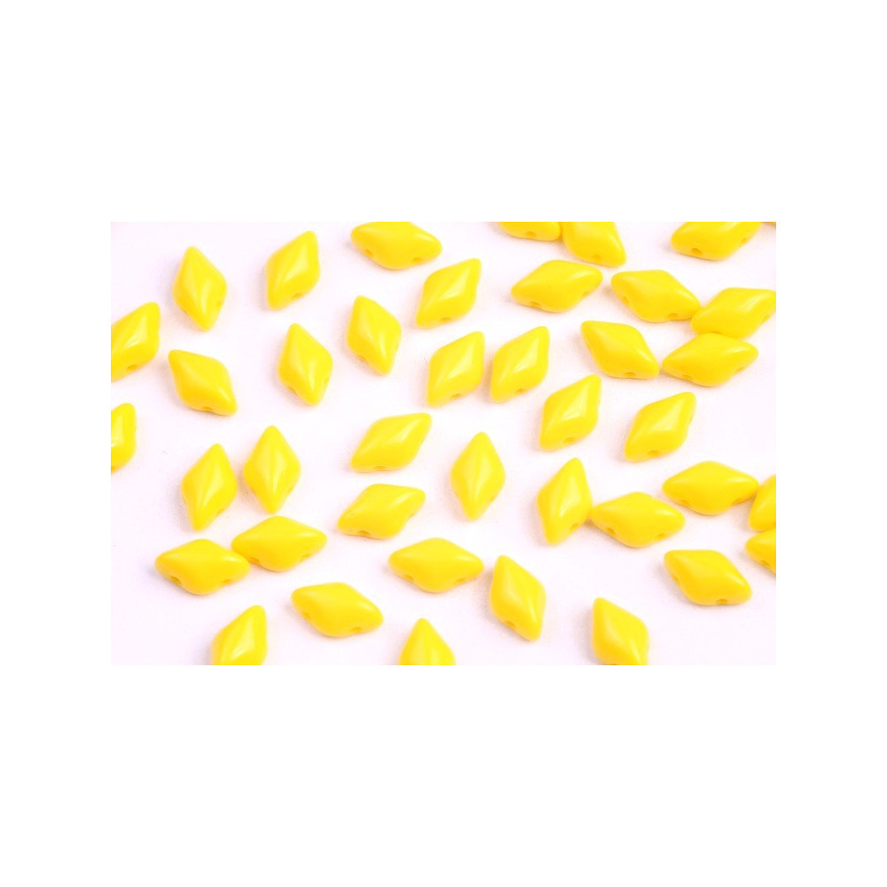 Vivid citrus tones are currently dominating the fashion landscape, making these bright yellow diamond-shaped components a must-have for your summer collection. The Matubo GemDuo beads offer a unique flat-back design with a raised top, creating a professional 3D effect in any pattern. Whether you are crafting a sun-inspired medallion or a bold statement cuff, the sharp angles of these Czech glass beads provide the perfect geometry for modern designs.