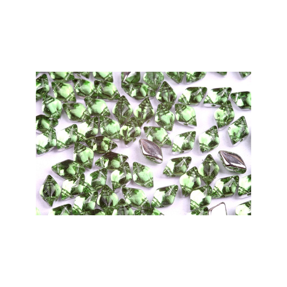 Green Backlit Ice is a sophisticated finish that combines the transparency of spring-green glass with a reflective silver backing. This specific Matubo GemDuo treatment ensures that every bead catches the light from within, offering a depth that standard opaque finishes cannot replicate. These Czech glass beads are manufactured by Matubo using high-quality glass to ensure uniform size and consistent color across your entire project.