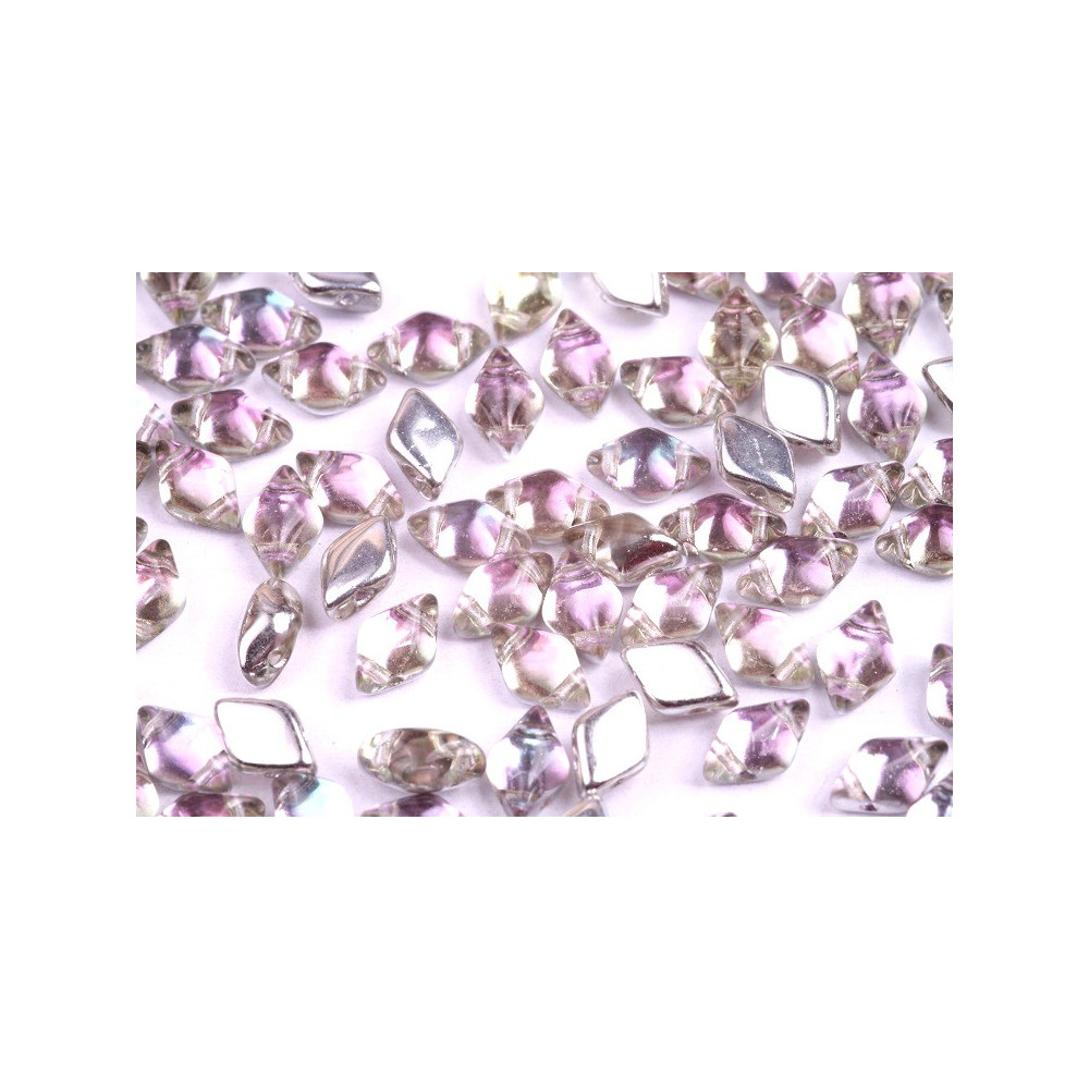Matubo GemDuo beads in Backlit Pink Mist for geometric beadwork designs. 8x5mm Backlit Pink Mist 80100/26536