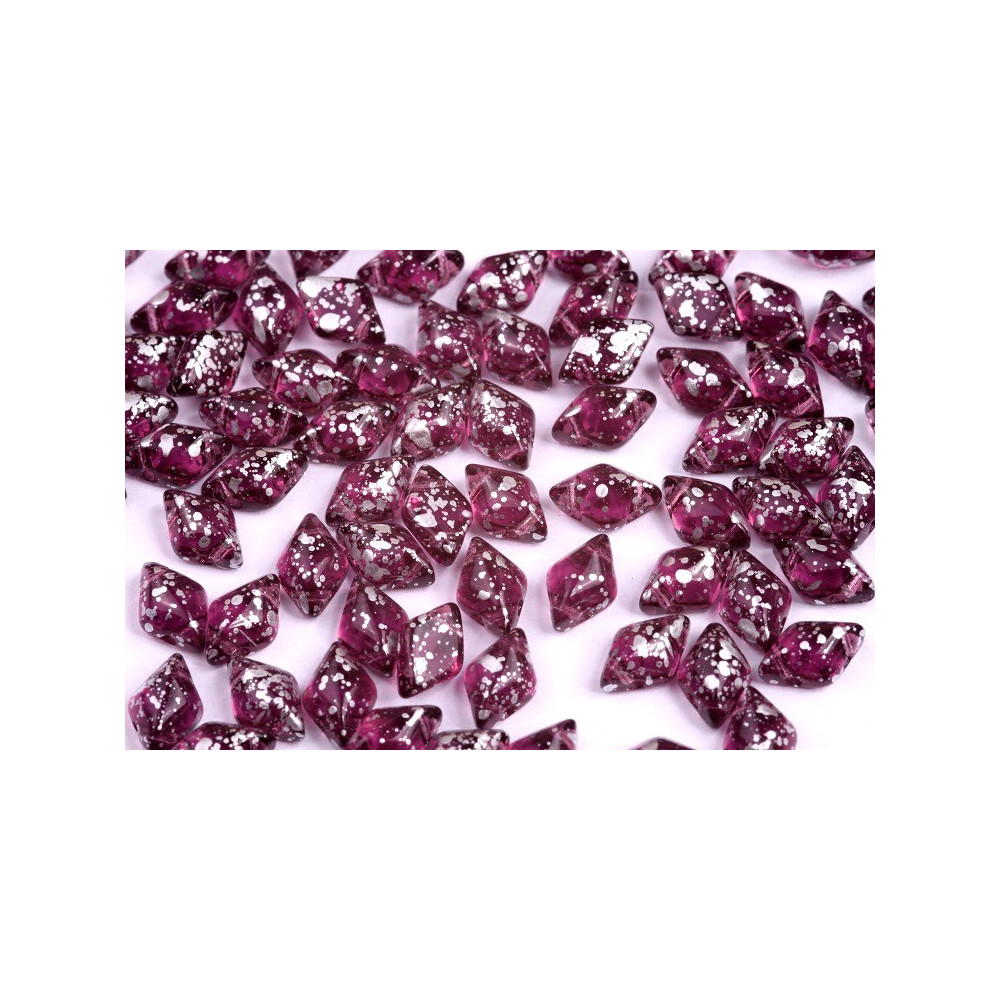 Violet tones combined with silver accents offer a regal yet edgy aesthetic suitable for both evening wear and artisan craft collections. Incorporating these Czech glass beads into a pair of elegant drop earrings alongside creamy waxed pearl beads creates a sophisticated balance between the sharp diamond geometry and soft rounded curves. To make the silver splash truly pop, try combining this palette with jet black for a neutral accent or gold for a striking contrast that emphasizes the metallic details. These beads are ideal for advanced needlework techniques where multiple thread passes through the bead are required for structural integrity.