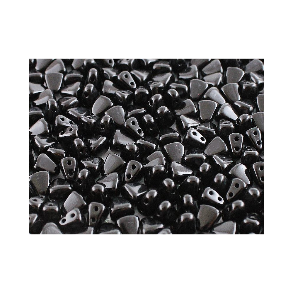 Opaque Jet Black finish provides a classic, deep saturation essential for structural beadwork requiring high contrast and precision. These Matubo™ Nib-Bit beads feature a unique wedge shape with two parallel holes, engineered with tight tolerances to ensure consistent stacking and alignment in complex patterns. Professional designers value the 0.8 mm hole size for its ability to accommodate multiple thread passes through the bead. For best results, use Nymo thread with beading needles size 10-12 to maintain structural integrity in high-tension designs without compromising the glass.
